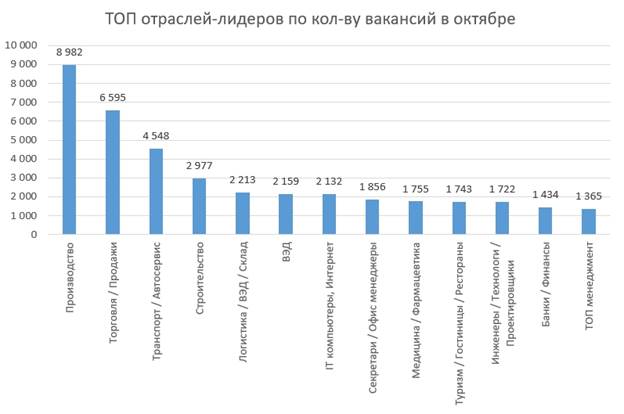 В октябре больше всего вакансий сконцентрировано в следующих сферах (рис. 2):
